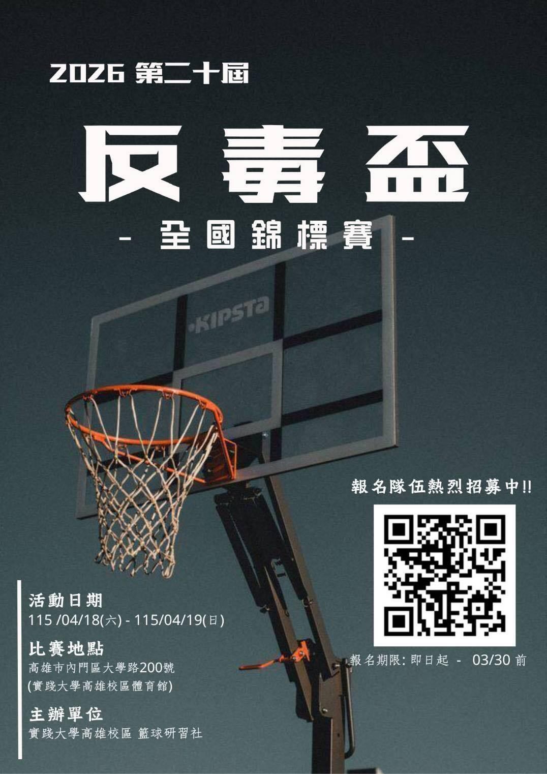 【生輔暨校安組】實踐大學辦理「第二十屆反毒盃籃球賽」活動辦理公告。