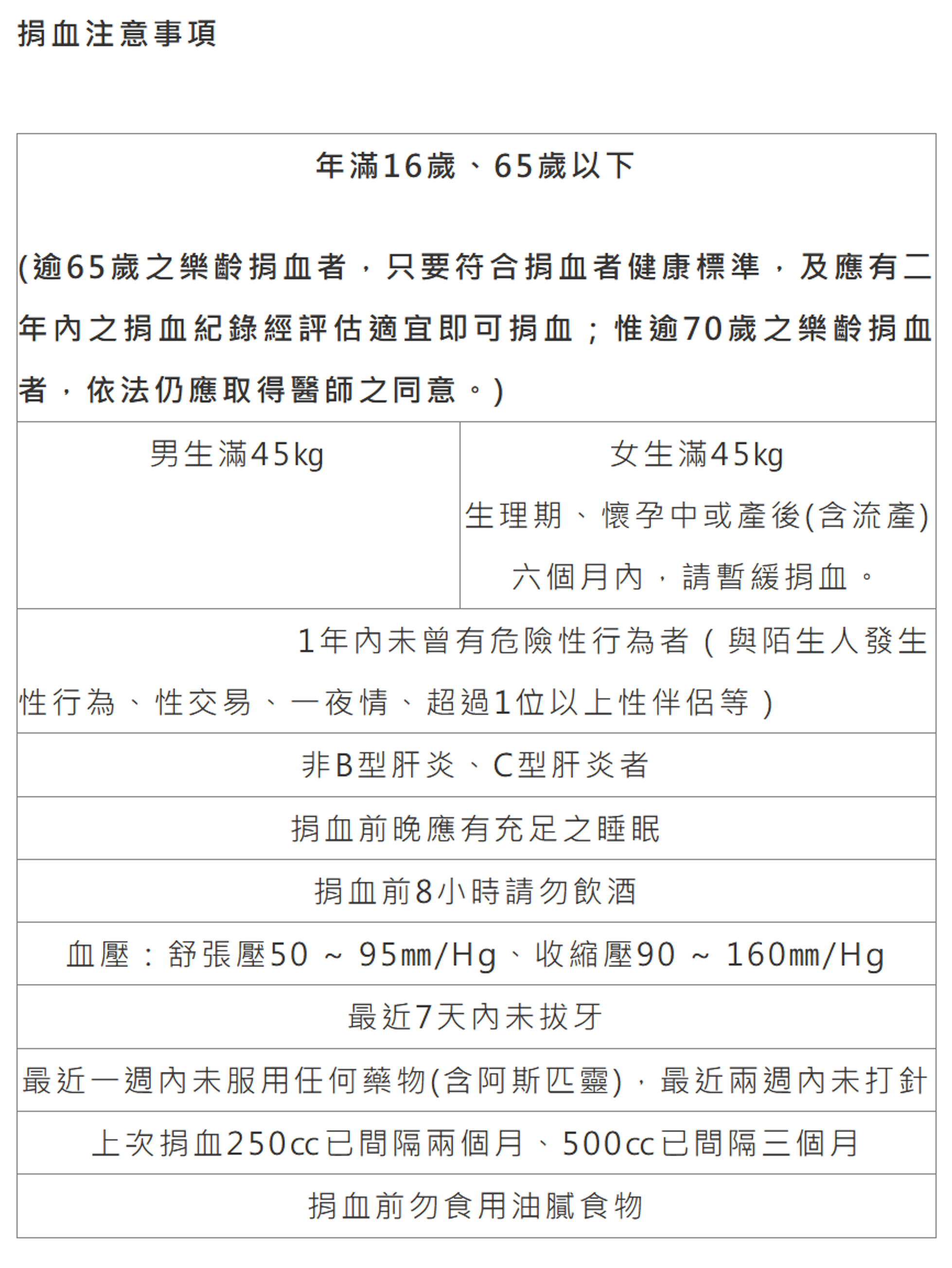 記得攜帶有照片與身分證字號的證件,捐血前會有一個簡單的查驗程序。